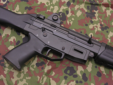 右側側面。独自のセレクターレバーが右側にある。これが操作性にどのように影響するか、気になるところ。また、M16系のセレクターと比べると切り替えが重い。幾度となく操作していると若干軽くなってきた。