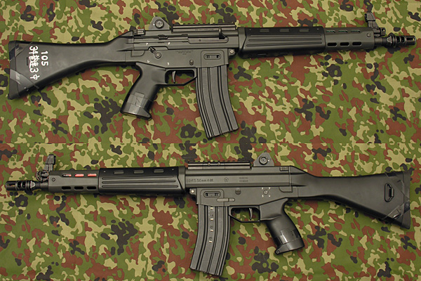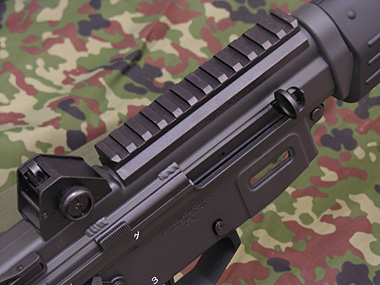 左の実銃写真は折り曲げ銃床モデルだが、刻印に注目。タイラップに隠れて見えにくいが89Rと刻印されている。