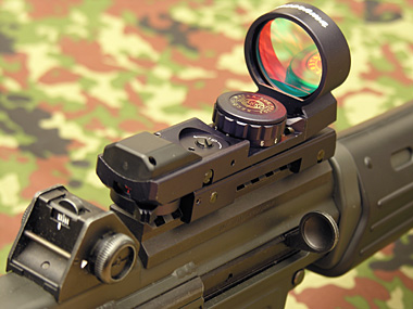 最近オープンドットサイトを多用している。ミリタリーでは耐久性の問題か使用されているシーンをあまり見たことがないが、ゲームに使用するならば軽量でサイティングしやすいオープンのほうが使い勝手はよい。 これまでコンバット45系を使用していたが、もう少し高いダットはどうなのだろうと気になり購入してみた。 |