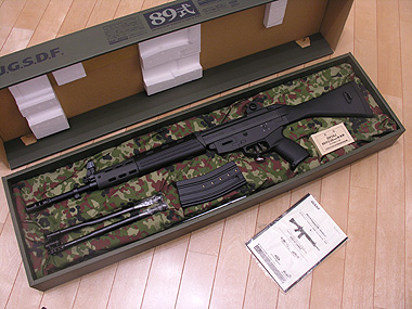 2006年7月13日、東京マルイから自衛隊現用制式ライフル、89式小銃がついに発売された。今回はセカンドロットとして入荷したものを9月18日にエチゴヤ東京にて29,975円で購入。 ついでに420連マガジンを二本と、スコープマウントベース(1,764円)、左面カスタムセレクターもまとめて購入した。