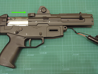 オプションパーツの左面カスタムセレクターを装着してみた。M4から乗換えだと非常に操作しやすく感じるが、無いならば無いなりに右セレクターに慣れていくので、最近では取り外している。やはり、89式の由緒正しい右セレクターをいかにすばやく扱えるか、このあたりがこの銃の醍醐味なのだと思う。