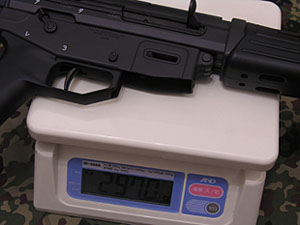 ![]() ノーマルマガジンは212g。420連マガジンも同程度の重量。 |