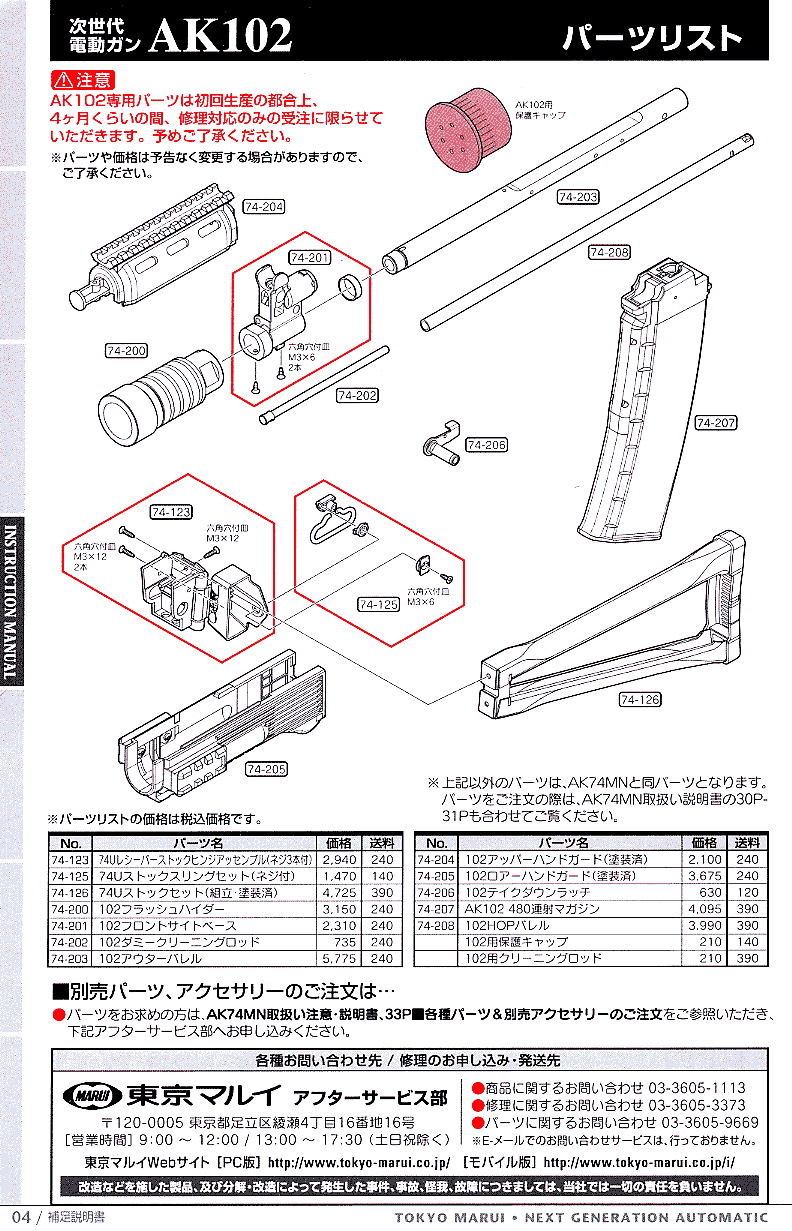 パーツリスト(AK102専用パーツ)
