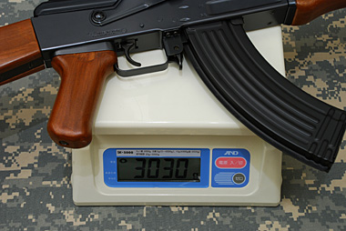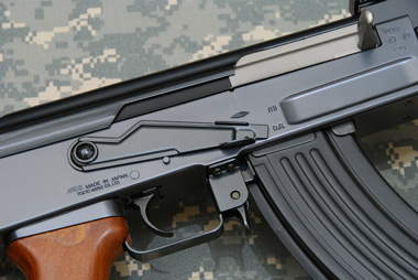 600連の多弾数マガジンが発売されている。マルイの電動ガンシリーズ中、もっとも多弾数なのもAKの特徴だ。トリガーガードはスチールプレス。