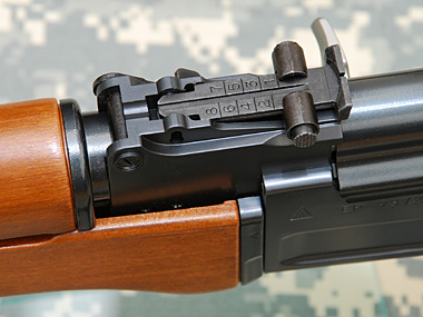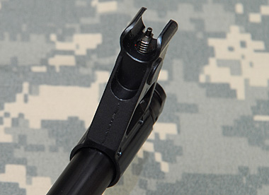 リアサイトはアッパーレシーバー前方にあり、目から遠いこともあり照準しにくい。