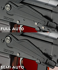 レシーバー右側面のセレクターレバーでセフティ、セミ、フルオートを切り替える。