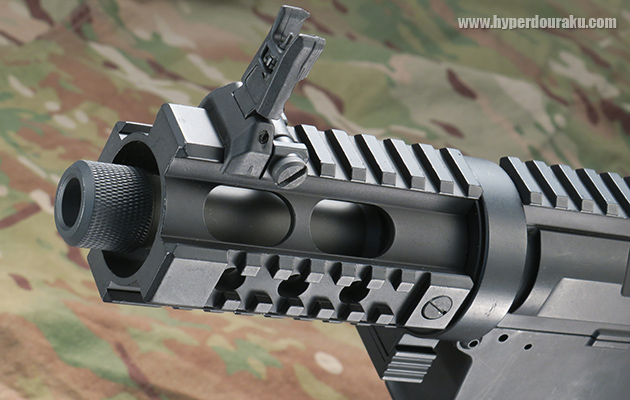 マズルはフラッシュハイダーなどなく、キャップ式になっています。マズルキャップを外すと16mmの正ネジ仕様となっています。