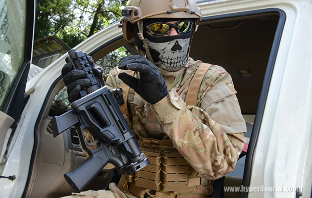 今、アメリカでも流行りのPCCというスタイル、折り畳みストック装備、主要パーツはメタル製で質感、剛性とも素晴らしい出来です。内部メカもEFCS電子制御システム搭載で、11.1Vバッテリー対応、従来の電動ガンの不満点でもあったグリップの太さも、独自の薄型モーターにより改善されています。