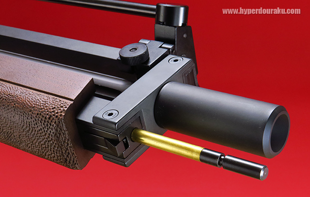 ボディやバレルなどの主要パーツはアルミCNC加工で質感、剛性も高いです。ハンドガード、グリップなどはウォールナットのリアルウッドを使用しており、忠実に再現しています。また外観だけでなく、実銃の約7kgに近い6.5kgとほぼリアルウェイトを実現しており、実銃と見紛うほど、リアル&ヘビーに仕上がっているエアコッキングガンです。