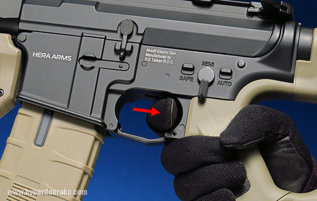 HERA ARMS CQRの一番の特徴は電子トリガーのSSS.II搭載によるプリコッキング機能です。