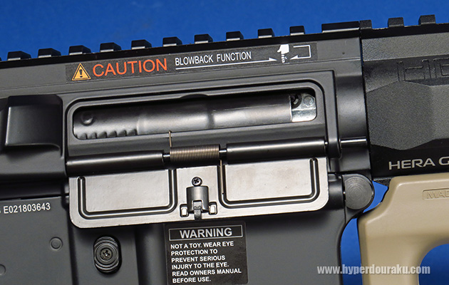 またHERA ARMS CQRはボルトカバーが可動するEBBです。射撃時にボルトが動いているかのようなアクションが楽しめます。ただしリコイルはありません。