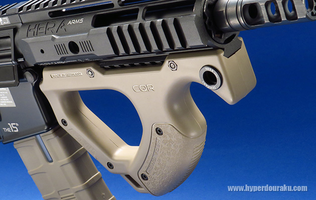CQRフロントグリップは着脱可能となっており、HERA ARMSの7inch IRSレイルシステムのみで使用もできます。