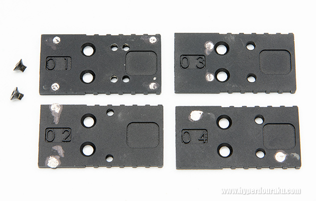 MOSのダイレクトマウント用に4枚のプレートが付属する。なおAimpoint ACROには対応していないとのことだ。