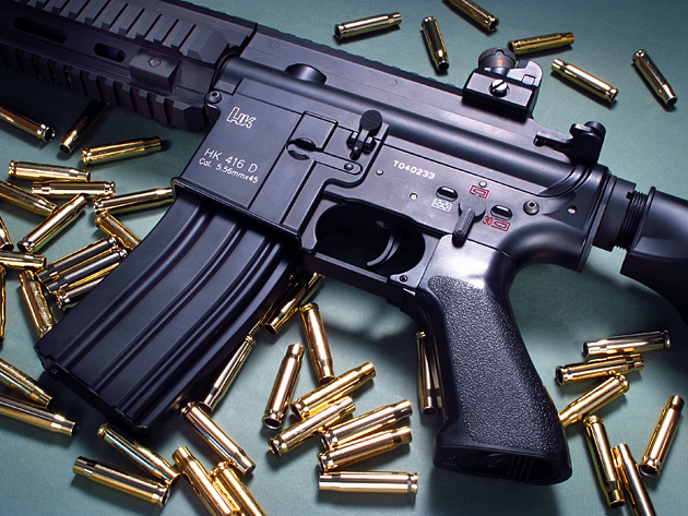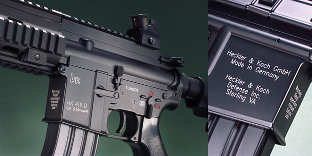 実銃のHK416はドイツH&K社が2005年に開発した5.56mm×45弾を使用するアサルトライフル。米コルト社の開発した傑作アサルトライフル"M4カービン"をベースにH&K社が独自の改良を施したM4クローンだ。クローンとは本家のコルトM4カービンに対して別会社が改良やOEM、コピー製造されたものを意味し、M4以外ではガバメントクローンとか、AKクローンなんて人気の銃器にはよくある話らしい。