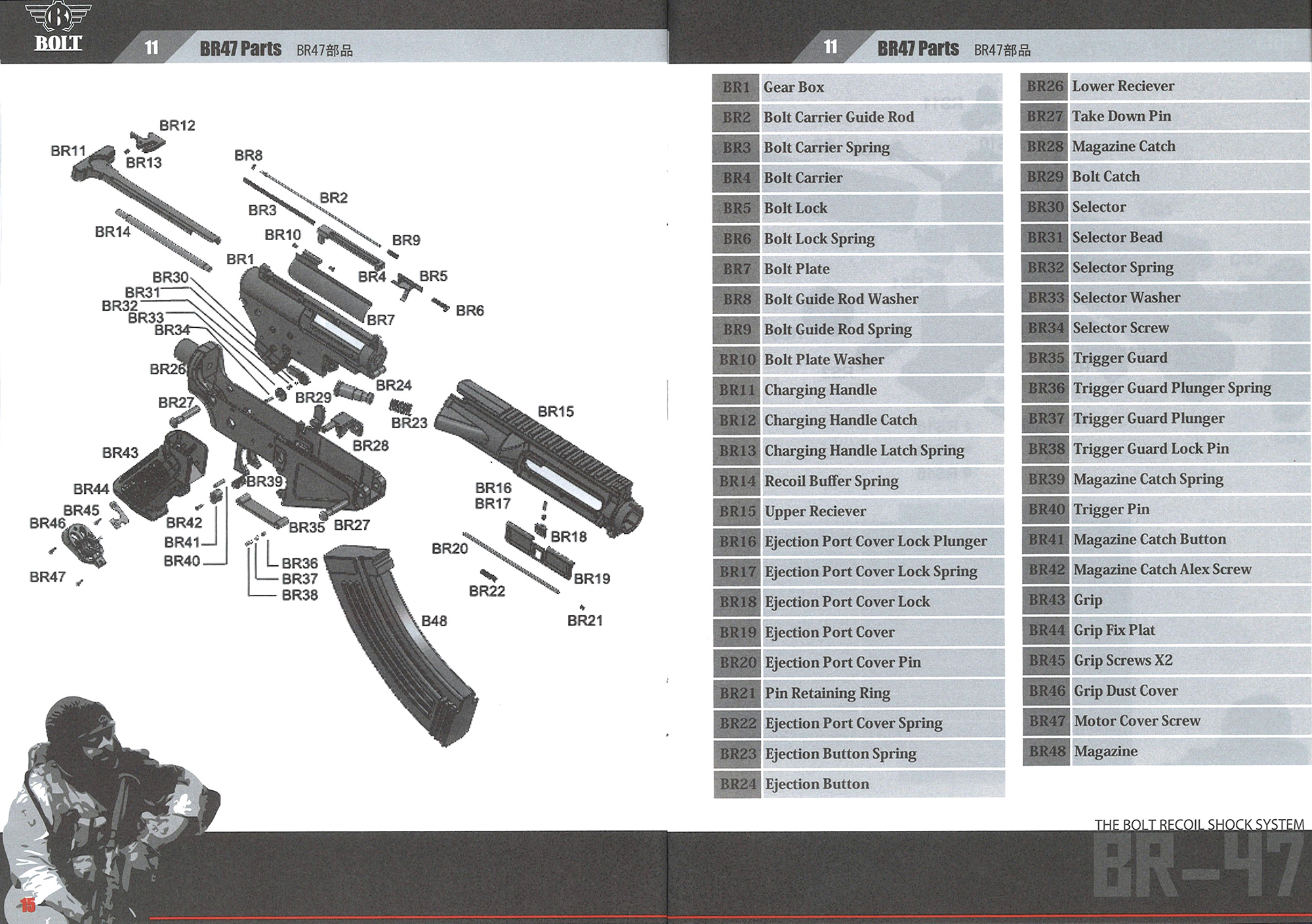 このSR-47は2013年に発売されていましたが、その当時はナイツ社のライセンスを取得していなかったため、名称はBOLTの頭文字をとって「BR-47」なっていました。