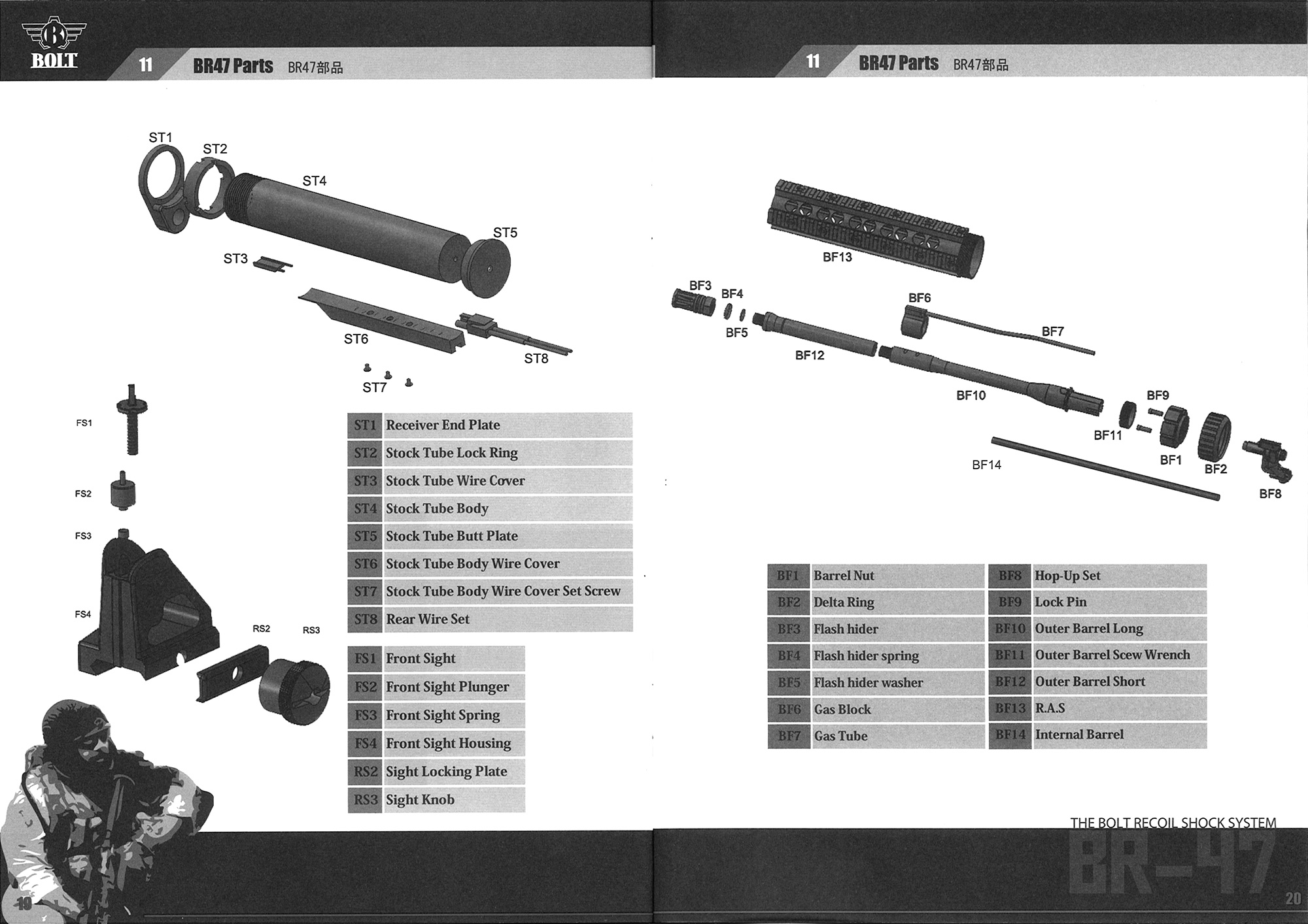 BOLTの電動ガンメカの特徴、B.R.S.S.については、過去のSR-16のレポートをご参照ください。