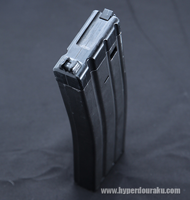 マガジンはリップ式になっています。残弾が無くなるとフォロアーに連動して後部のリンクパーツがボルトキャッチを押し上げてボルトキャリアをホールドオープンさせます。いくつかのタイプが試作されていますが、マガジン装弾数は40~60発を想定しているそうです。
