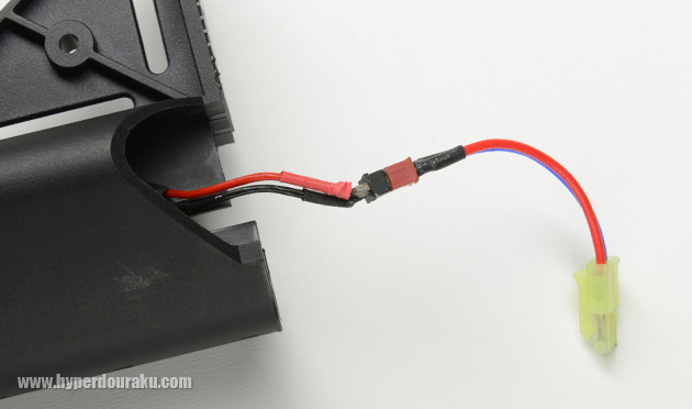 T字コネクターの根元が断線しそうだった。コードはストックの中で降り曲がって収納されるのでこの部分も強化して欲しいところ。T字ミニコネクタの変換ケーブルはホビーショップいずもから別送されてきたものだがパッケージに付属するとのこと。なお、Ver.1でストックのバットプレート取り外しが固かったのは改善されていた。