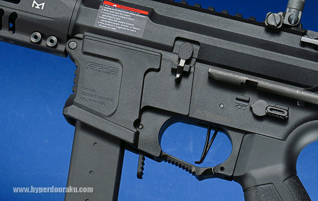 マガジンキャッチはMP5のようなレーバー式に変更されています。トリガーガードもスリット入りのワイドタイプが採用されています。