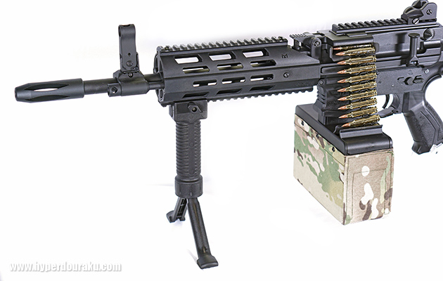 付属の全自動電動ボックスマガジンで分隊支援火器としての運用や、M4系マガジンがあればアサルトライフルとしての運用も可能だ。
