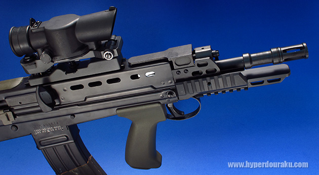 L85 A1のフロント部分はプラ製ハンドガードで、イギリス陸軍採用モデルです。