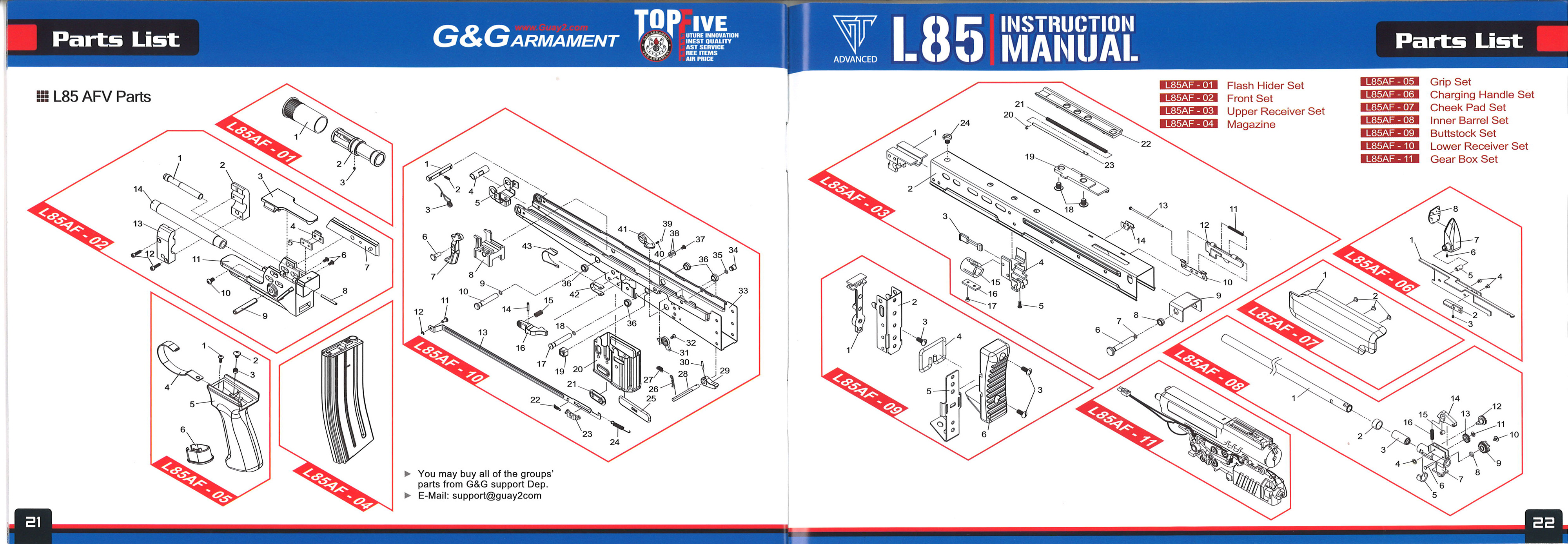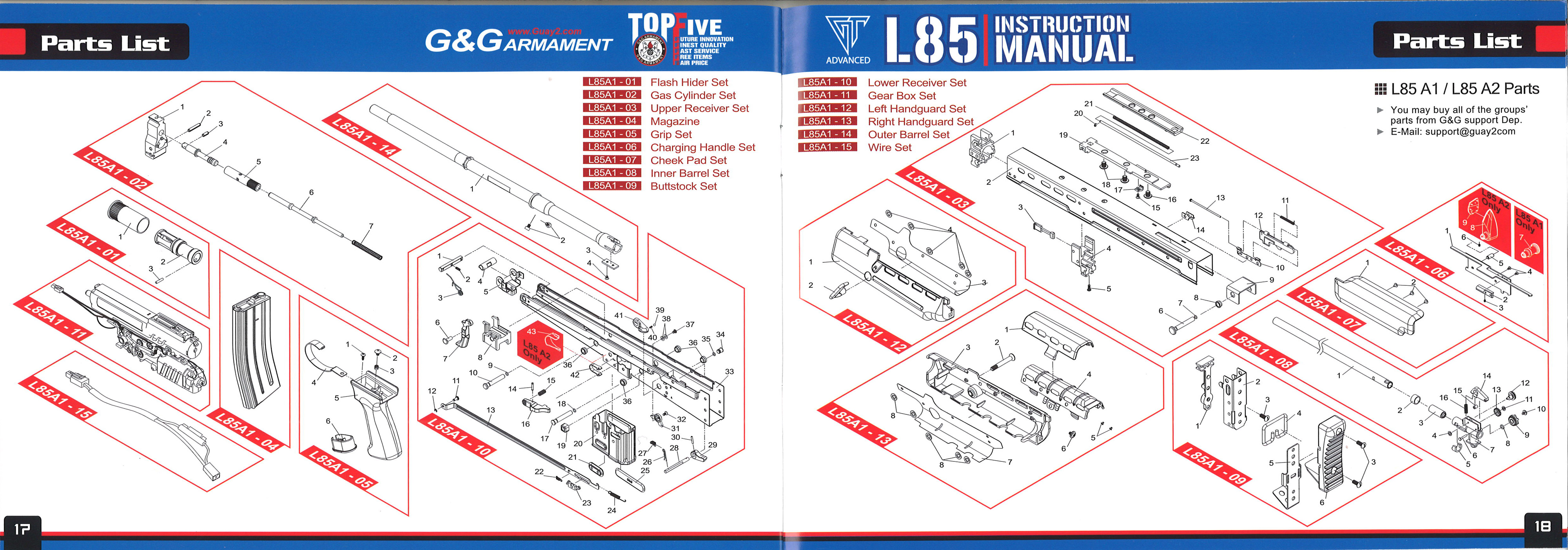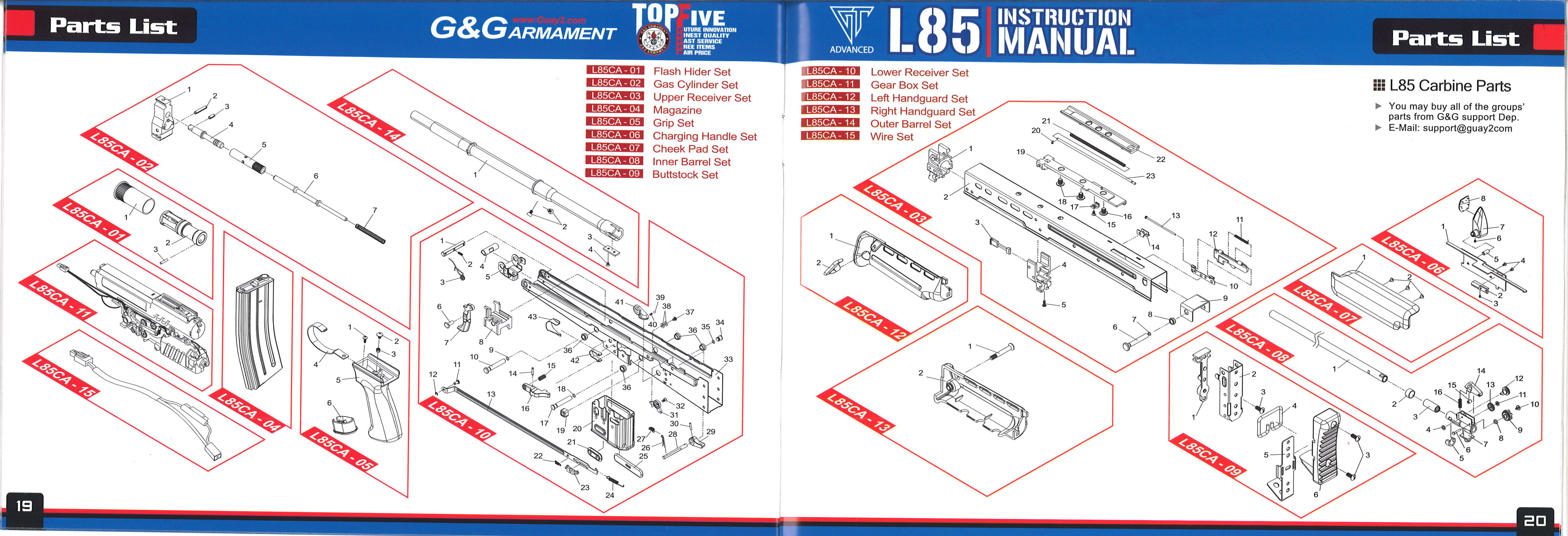 パーツリスト L85 A1/A2 パーツリスト L85 AFV パーツリスト L85 CARBINE |