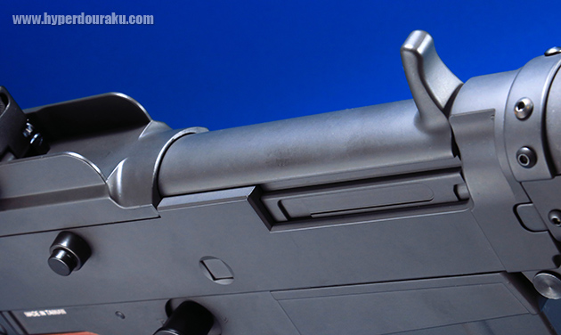 レシーバーの各部エッジも立っており、素晴らしい完成度です。さらにマガジンが挿入されていないと作動しない「マガジンセフティ」、全弾撃ち尽くすと止まるオートストップを搭載しています。