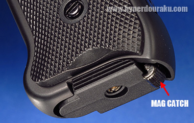 マガジンキャッチはグリップエンドにありますが小さくて使いにくいです。