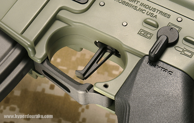 トリガーはストレートタイプを採用。これは米「CMC」社の正式ライセンスを取得したカスタムトリガーです。