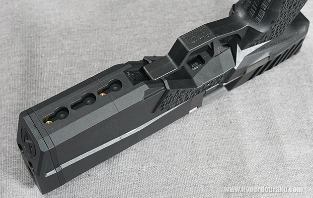 マズル部分のカバーは取り外すことができ、内部に専用トレーサーユニットを取り付けることができる。