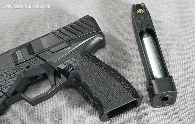 マガジンはアルミ製で、CO2カートリッジを背面からセットする。