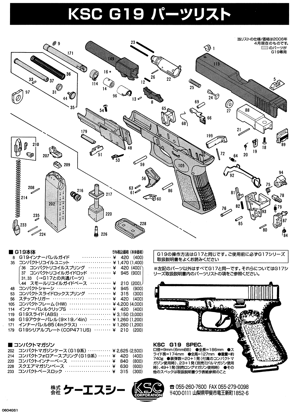 | KSC ガスガン G19C ストレートフレイム スペック & 初速データ | |||||||||||||||||||