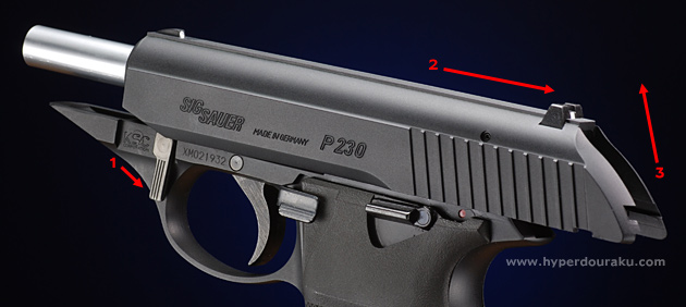 実銃のP230はスイス・ドイツの複合企業SIG SAUER社の開発した中型オートマチック拳銃で、.380ACP、.32ACPなどの拳銃弾を使用するバリエーションがある。