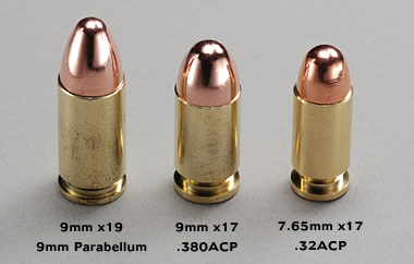 9mmパラの銃口エネルギーはおよそ360ft.lbsであり、.380ACPは約190ft.lbs、そして.32ACP弾はわずかに129ft.lbsしかない。