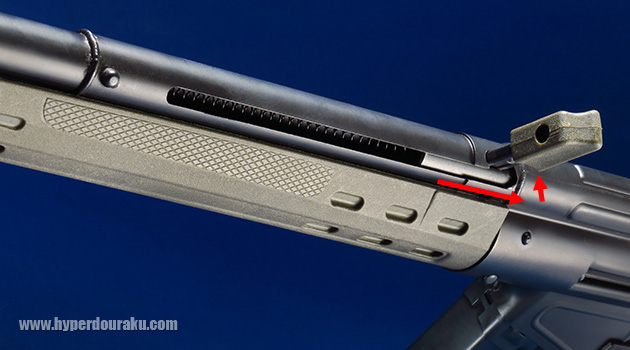 ホップはエジェクションポート内にドラム式が搭載されています。ちょっと固いですがクリック感もあります。