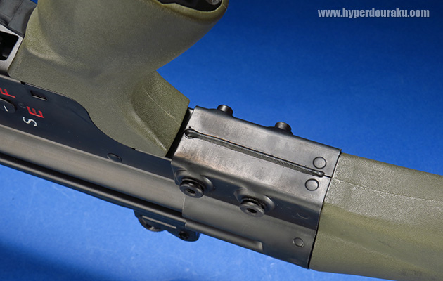 アウターバレル基部もレシーバーとがっちり取り付けられており、軋むことはありません。