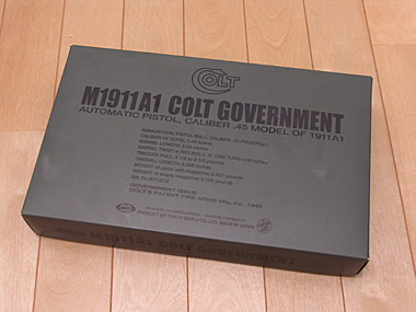 2006年6月29日、マルイの新作ブローバックガスガン、コルトガバメントM1911A1が発売されたので早速翌日、エチゴヤ東京にて\12,432で購入。外箱はいかにも軍用のダークグリーンと黒のフォント。