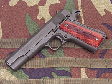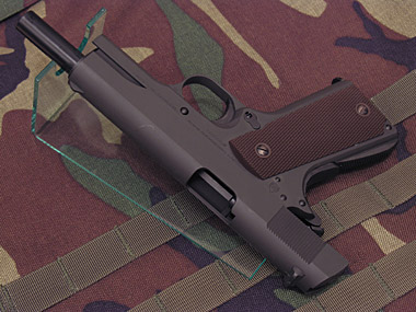実銃のコルトガバメントは1911年にアメリカ陸軍に制式採用された.45ACP弾を使用するオートマチックピストル。1985年にベレッタM92Fが採用になるまで第一線で使用され続けた。現在でも.45ACP弾のマンストッピングパワーの有効性を求める声は根強く、MEUピストルなど特殊部隊などではこのガバメントベースのカスタムガンなどが使用されている。