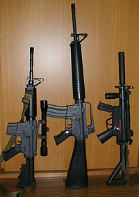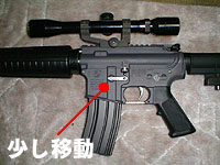 次に首の問題。16系は首が弱いのは周知の事実だが、A2ほどでないにせよ、M4でも気になることは気になる。銃を床に立てて、マズルに指を添える。で、首をクイクイっと動かしてみると、ビミョーにゆらゆらする。実用上は気にならないけど、どうしてもって言う人は、アルミフレームとか、アウターバレルの補強パーツなどを導入すれば解消されるんじゃないかな。
