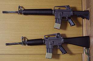 購入店は、東京都北区赤羽駅前にある「フロンティア91」。ここは関東では一番大きいんじゃないかというくらい、とにかく品揃えが豊富。とくに、スコープの多さと安さは、かなりのもの。ちなみにこのM4は新品で19,080円(本体)というミラクルプライス。ついでに2,500円で純正ではないけれど、ミニバッテリーも購入。わくわくしながら家に帰り、包装を引き千切り、銃を取り出す。