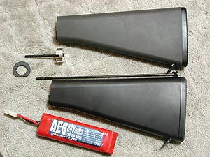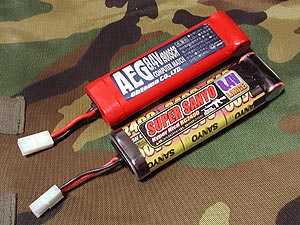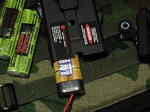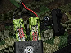 今年の冬をプレーして、やはり、ラージバッテリが付けたくなる。低気温下でのバッテリー性能の低下に悩まされたからだ。これまでアングスのPEQ2に9.6V、1100mA二又バッテリーという構成だったが、1日のゲームが持たない。ちょうどラストゲームあたりになると回転数が落ちてきて、射撃不能になるのには何度か悔しい思いをした。ストレス無くゲームに集中するにはタフギアが必要と判断。と言うわけで、再度ラージバッテリーを検討する。