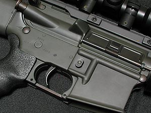 ノーマルはプラパーツのノブだが、スチール黒染めの半光沢感が渋すぎる。M4A1のカッコ良い部分だと思う。