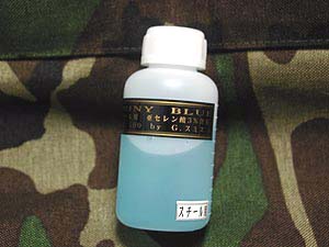 今回、使う薬品はコレ。G.スミスのSHINY BLUE液スチール用。容量は100ml。薄青いさらっとした液体だ。