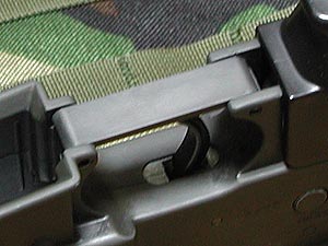 原因はマガジンを抜く際に銃をお手玉してしまい(なんでやねんっ!!)、マガジンとフレームをガシッとぶつけてしまった傷が、ボルトリリースボタン左の傷。もう一つはスリングでキャリーしながら移動している際にピストルベルトの金具と擦れあってできたトリガー上の傷。それにしてもこの程度の傷しか付かない。