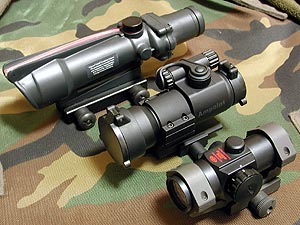 各光学機器の重量は、トリジコンTA11レプリカ 494g、エイムポイントレプリカ 352g、マルイ純正ダット 235g。全てマウントリング込み。
