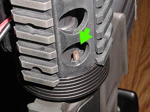 ※この後反対側の同位置に同じようにタップを切ってイモネジで固定した。2本のイモネジ効果は絶大。
