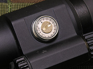 レティクル調整ネジは同社のAMPOINT同様。 バッテリーが入る部分は固定されていて動かない。ダイヤルスイッチ部分は動くが機能上の意味はない。