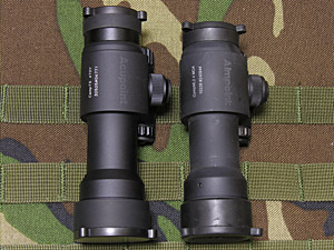 実物AIMPOINTとの比較。ACUPOINTの方が対眼レンズ側が8mmほど長い。