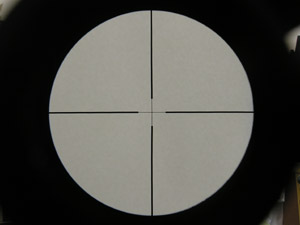 レティクルはオーソドックスなクロスゲージで狙いやすい。アイリリーフは約8cm~9cmくらい。ライフルスコープとしては平均的な距離だが、全長がコンパクトなので、トップレールのどの位置に設置するかで見やすさが決まってくる。