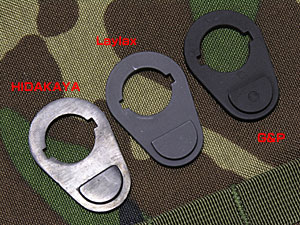 左からヒダカヤ ストックリングプレート(\1,380/エアボーン新宿)、Laylaxストックリング(\2,100/スーパーガン)、G&P付属。